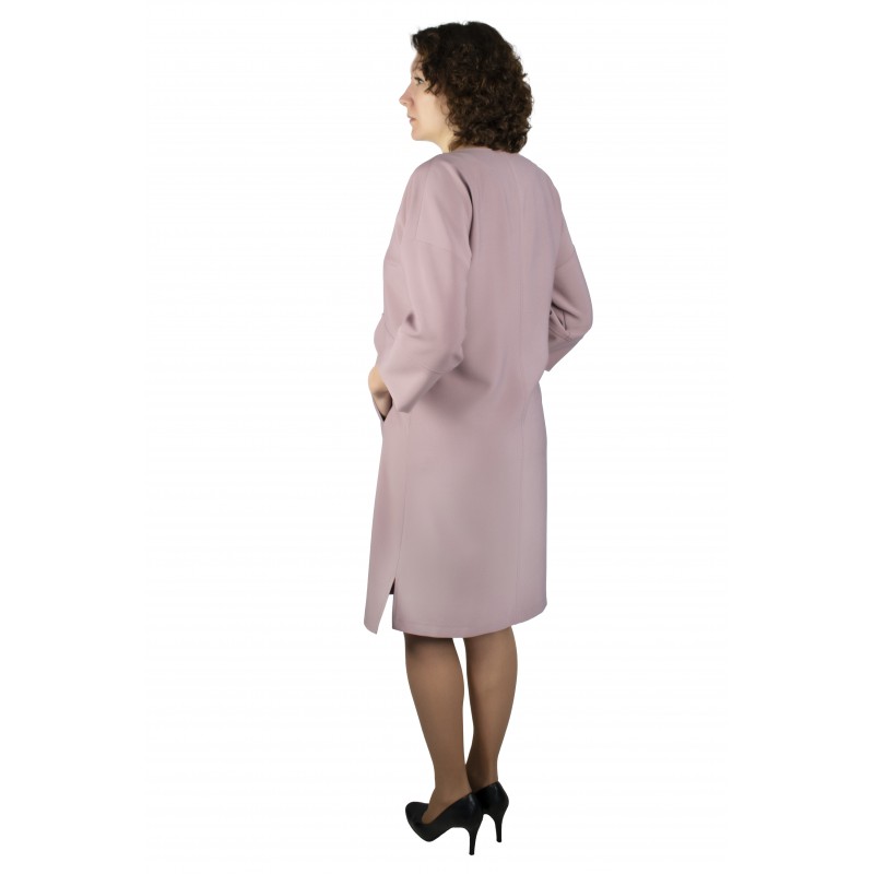 Покрой: Платье женское прилегающего силуэта. Рукав цельнокроеный из 2-х частей. Спинка со средним швом. Перед со средним швом и вертикальными, наклонными карманами с листочками с втачными концами и клапанами.